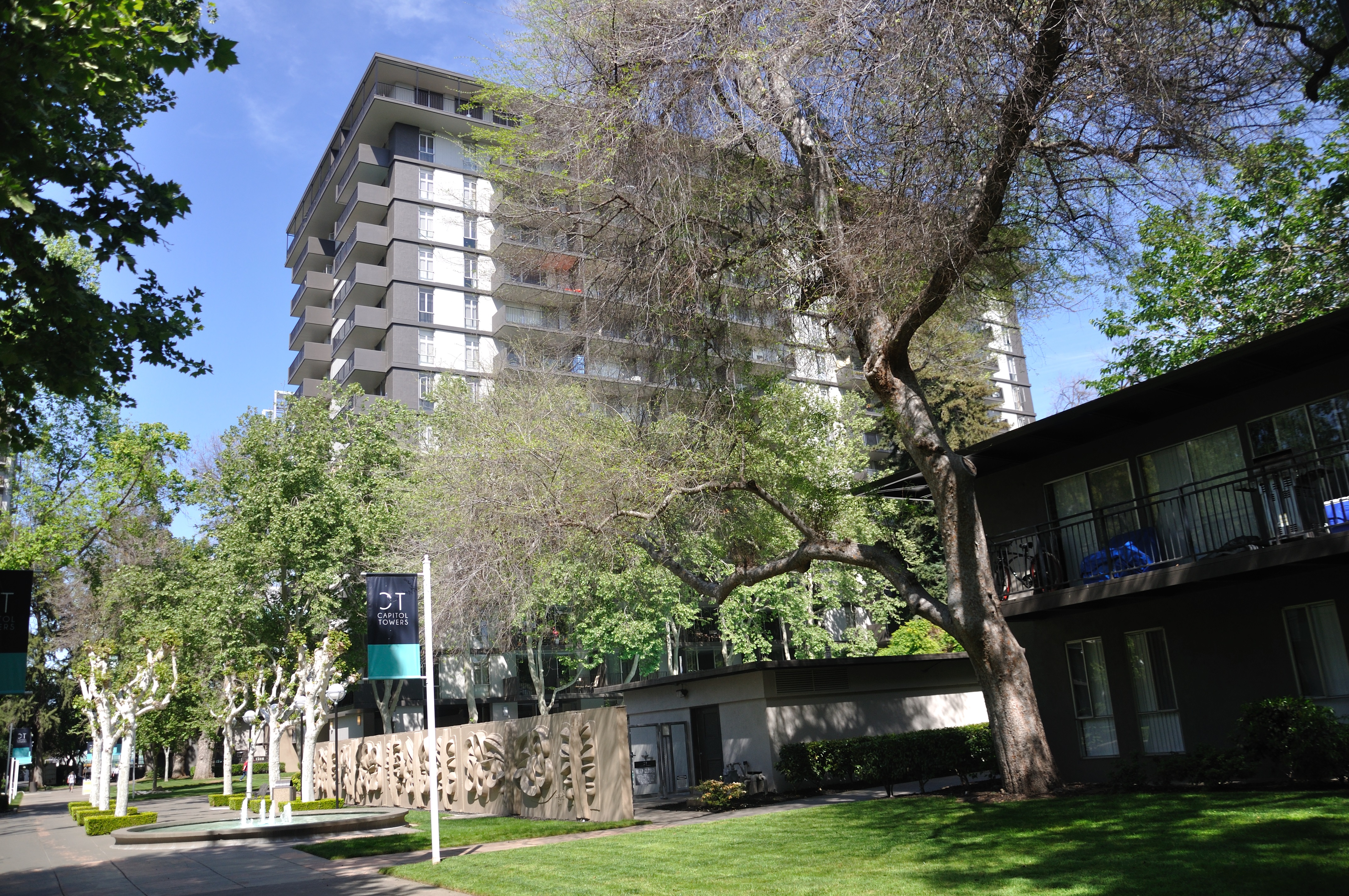 Capitol Towers is a large-scale, multi-family Modern residential complex with low-rise garden apartment buildings, a high-rise tower, and pedestrian-oriented landscapes on an approximately 10-acre superblock in downtown Sacramento. Constructed between 1959 and 1965, Capitol Towers was among the first privately sponsored urban redevelopment projects in California.