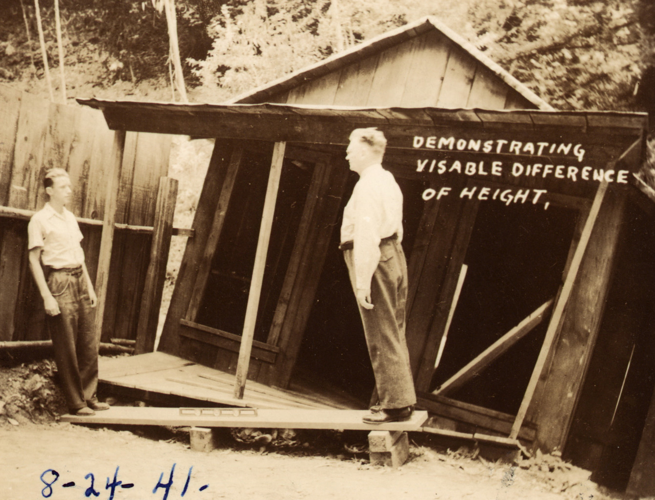 The Mystery Spot is a roadside attraction located in Felton, Santa Cruz County, established in 1941. It is the first and most significant example of its type in California, a "tilt-box" or "gravity house" roadside attraction that gained popularity in the mid-20th century. Established by George Prather, the Mystery Spot became a popular roadside attraction under the stewardship of Prather's son Bruce in the late 1940s and 1950s.